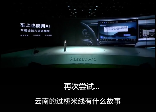 帕萨特发布会演示AI对话,出现故障尴尬局面。